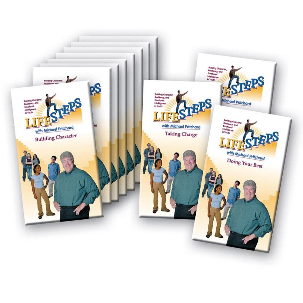 | LifeSteps: Doing Your Best | From: LIFESTEPS – Video Series -For grades 7-12 This program explores the intellectual and emotional skills essential to success: coping with anxiety, setting goals, identifying obstacles, maintaining self-esteem, and identifying personal resources. An appreciation of excellence is emphasized as students learn the importance of resourcefulness, perseverance and an optimistic view of life. | Original price was: $74.95.$69.95Current price is: $69.95. |